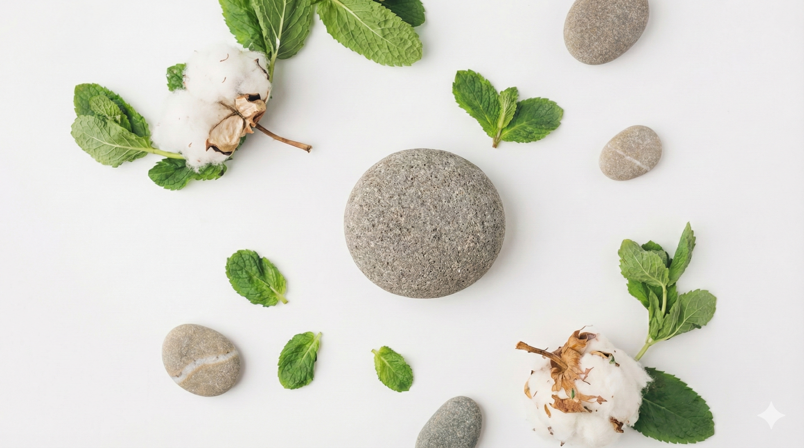 Sự kết hợp hoàn hảo giữa xà bông thảo mộc lành tính (bạc hà, nghệ, than tre) và đá cuội mịn, giúp chăm sóc làn da mịn màng và thư giãn giác quan theo cách thuần tự nhiên nhất.